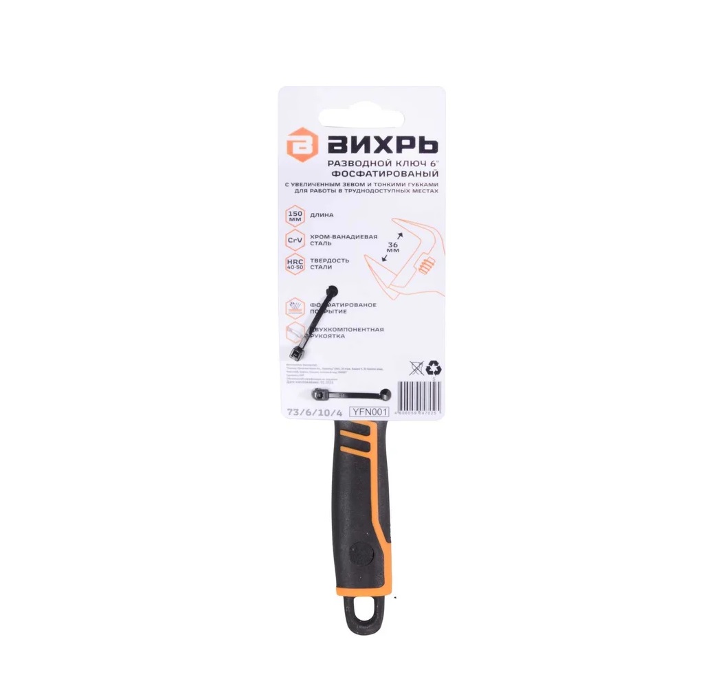 | Ключ разводной с тонкими губками, фосфат. 150мм/36мм Вихрь 73/6/10/4 |