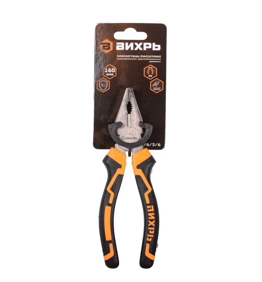 | Плоскогубцы никель., двухкомп. рукоятки 160мм "Вихрь" 73/6/3/6 |