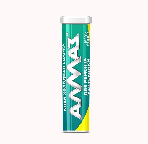 В состав Клея холодная сварка «Алмаз» входит 2 компонента отвердитель и эпоксидная смола.