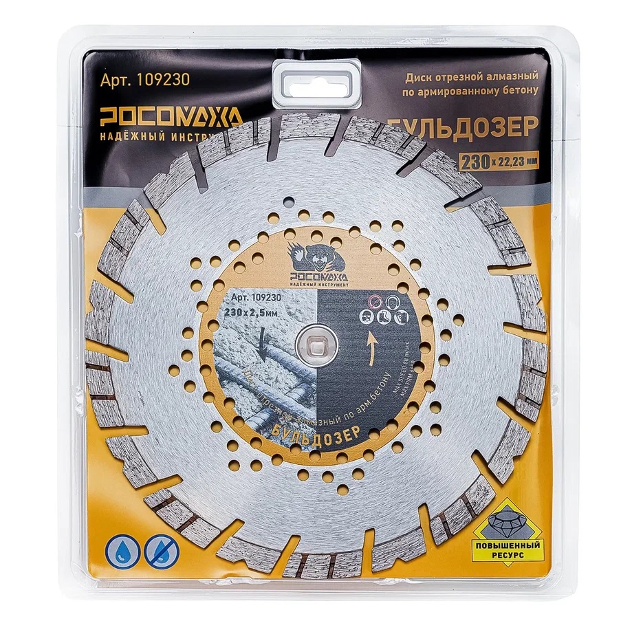 | Диск отрезной алмазный по арм.бетону БУЛЬДОЗЕР 230*2,5 мм "РОСОМАХА" 109230 |